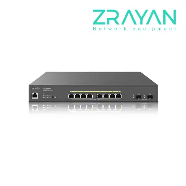 سوییچ مدیریتی انجنیوس مدل ECS2510FP یک سوئیچ لایه 2+ با 8 پورت گیگابیتی اترنت و 2 پورت آپلینک SFP+ 10 گیگابیتی است که برای شبکههای کوچک و متوسط طراحی شده و عملکرد و انعطافپذیری قابل توجهی ارائه میدهد. تمامی 8 پورت گیگابیتی این سوئیچ از استاندارد IEEE 802.3at PoE+ پشتیبانی میکنند و امکان تامین برق دستگاههای سازگار را تا سقف 30 وات برای هر پورت فراهم میسازند، که برای اتصال اکسس پوینتهای بیسیم، دوربینهای مداربسته IP و تلفنهای VoIP ایدهآل است.